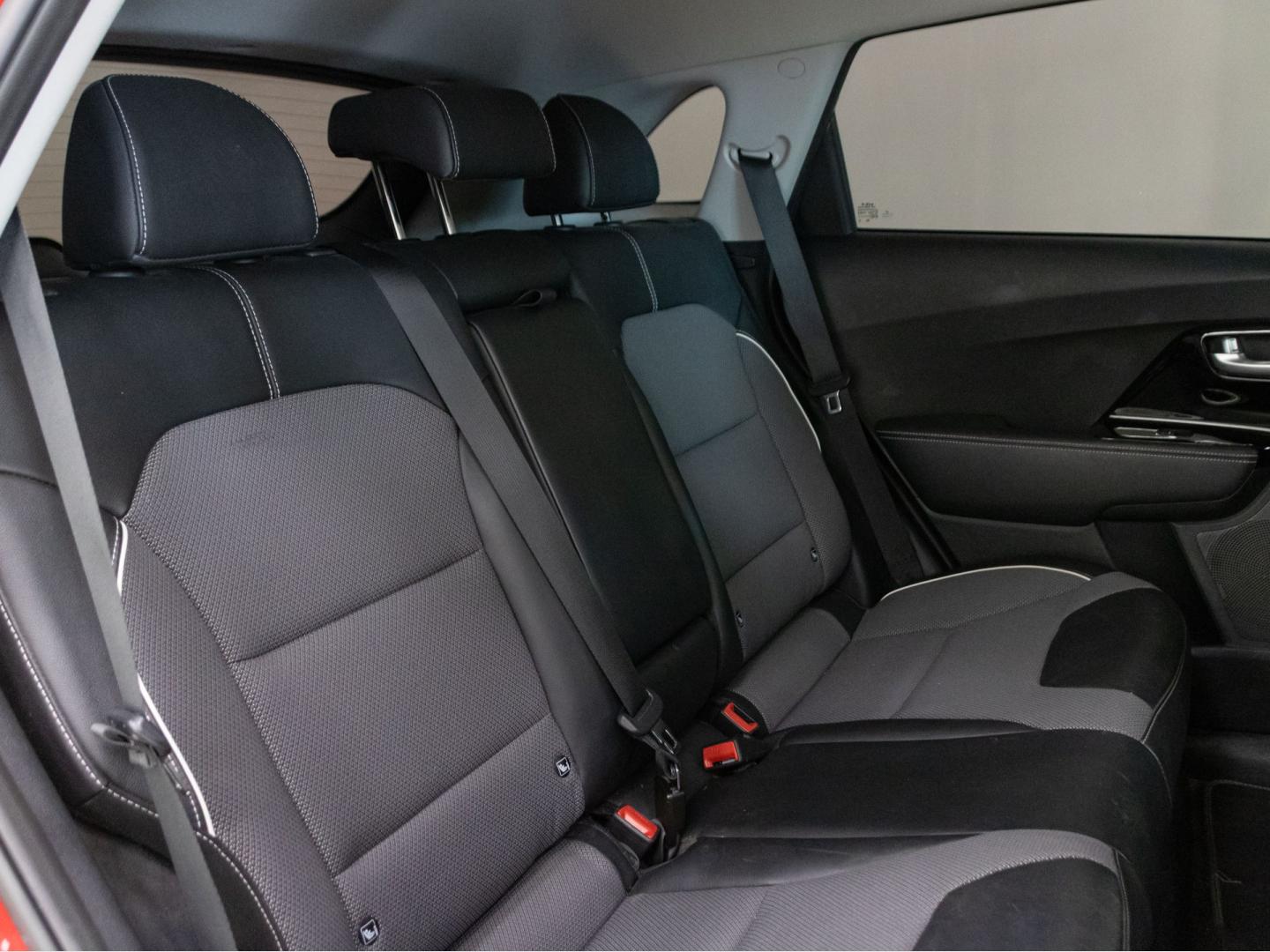- Asientos de tela (material principal) y de cuero sintético (material secundario)