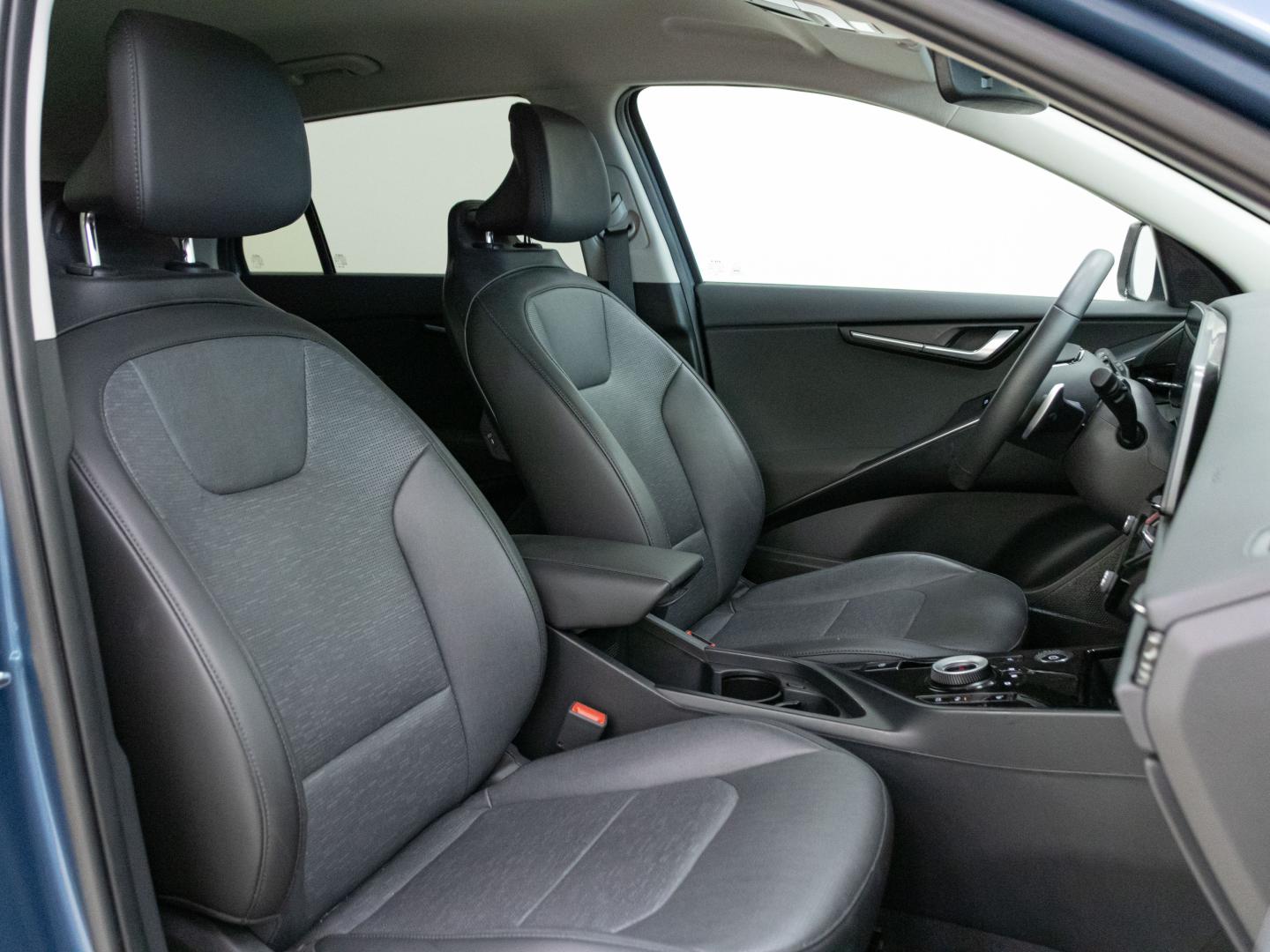 - Asientos de tela (material principal) y de cuero sintético (material secundario)