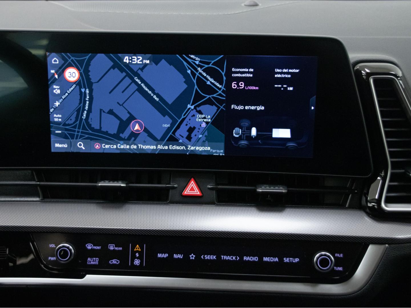 - Navegador con datos vía internet y pantalla a color de 12,30 " con información en 3D y con voz, control mediante pantalla táctil y información de tráfico 31,2 y 84
