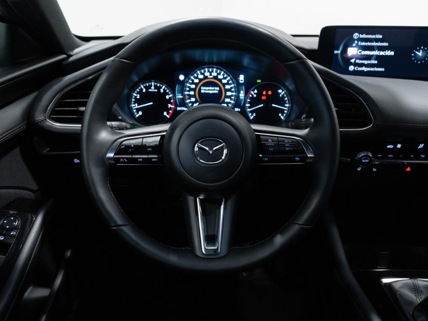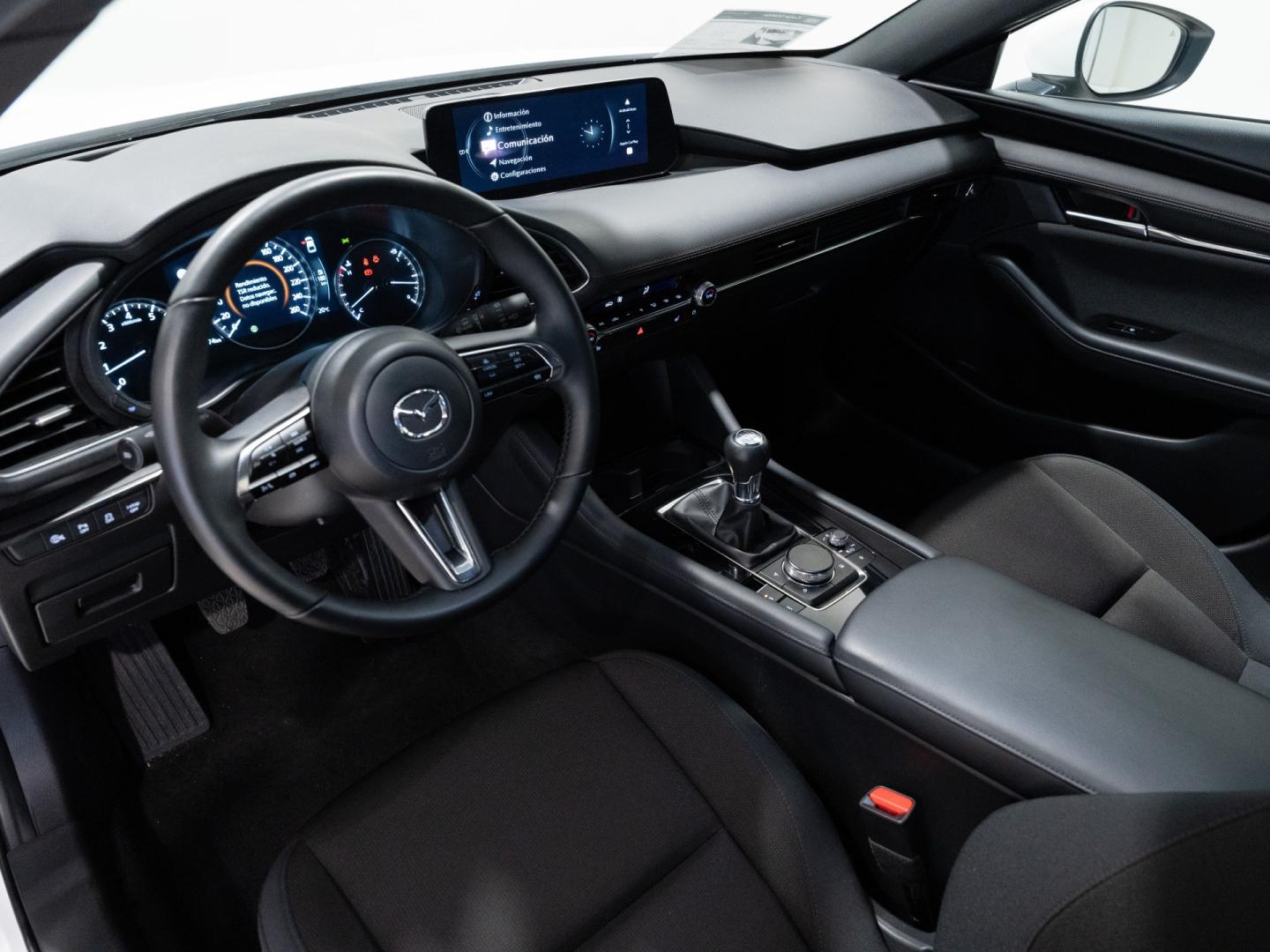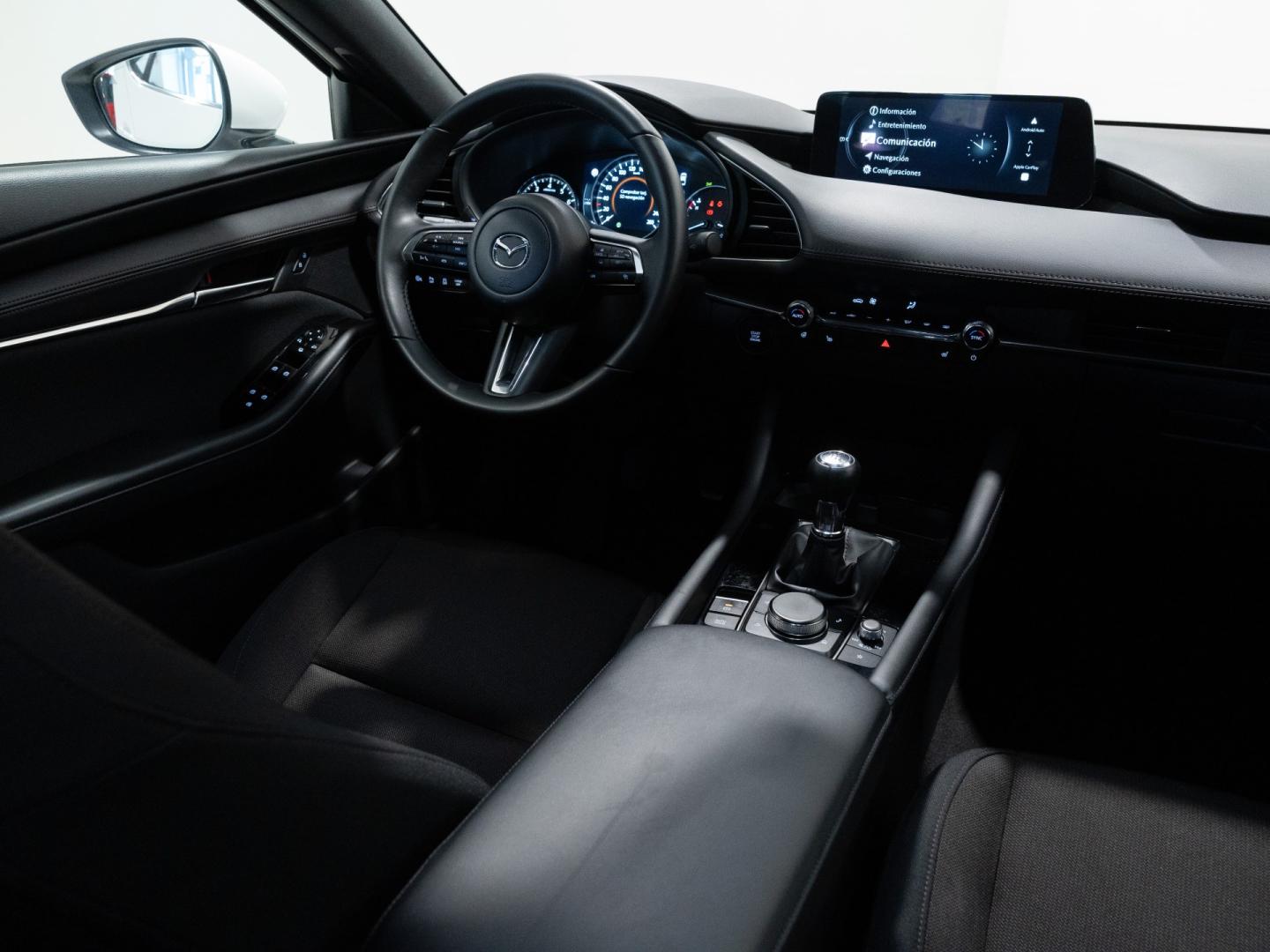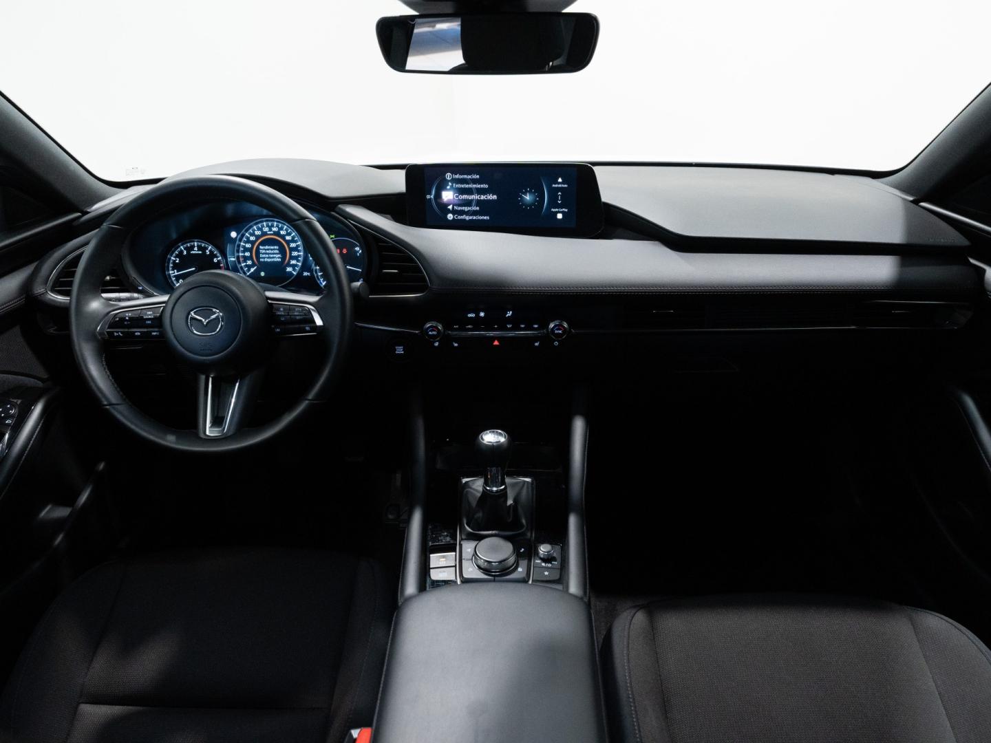 El Mazda 3 Centre Line 2.5 e-Skyactiv G de 140 CV es un compacto que destaca por su calidad de rodadura, suavidad y enfoque premium, ideal para quienes buscan una conducción refinada y confortable en el día a día. Su motor gasolina con tecnología híbrida ligera ofrece una respuesta progresiva y agradable, aportando equilibrio entre prestaciones y confort en todo tipo de trayectos. El acabado Centre Line incorpora un equipamiento muy completo, con pantalla multimedia con sistema Mazda Connect, cuadro digital, climatizador automático bizona, navegador, sensores de aparcamiento y asistentes de conducción, además de un interior cuidado con materiales de calidad que refuerzan su carácter más sofisticado dentro del segmento. Un compacto elegante y bien equipado, pensado para combinar tecnología, confort y calidad de conducción en cada trayecto.