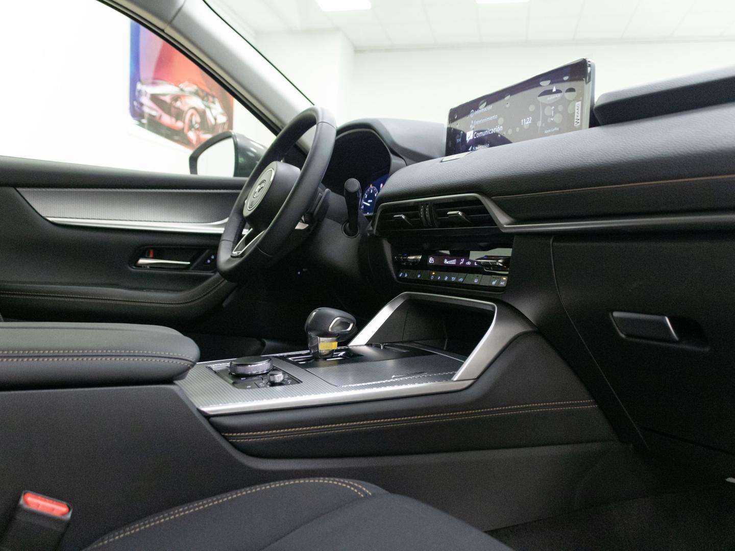 - Transmisión de tipo automático con cambio automático con modo manual de ocho marchas con paso a modo manual, palanca en el volante y levas en el volante palancas tras el volante ( SKYACTIV-Drive ) 0