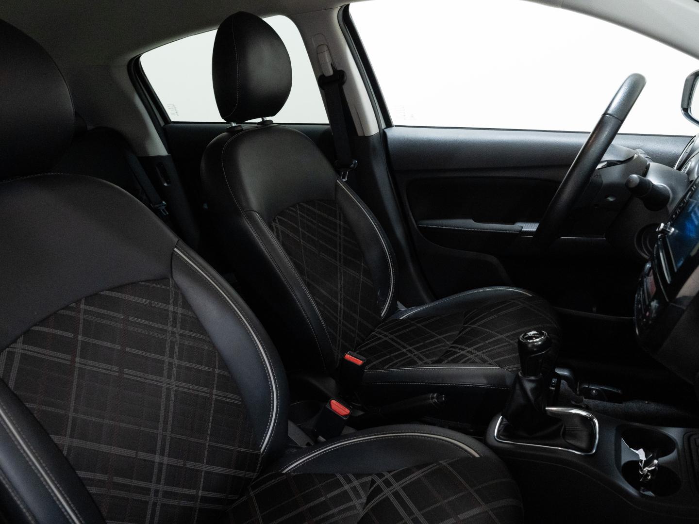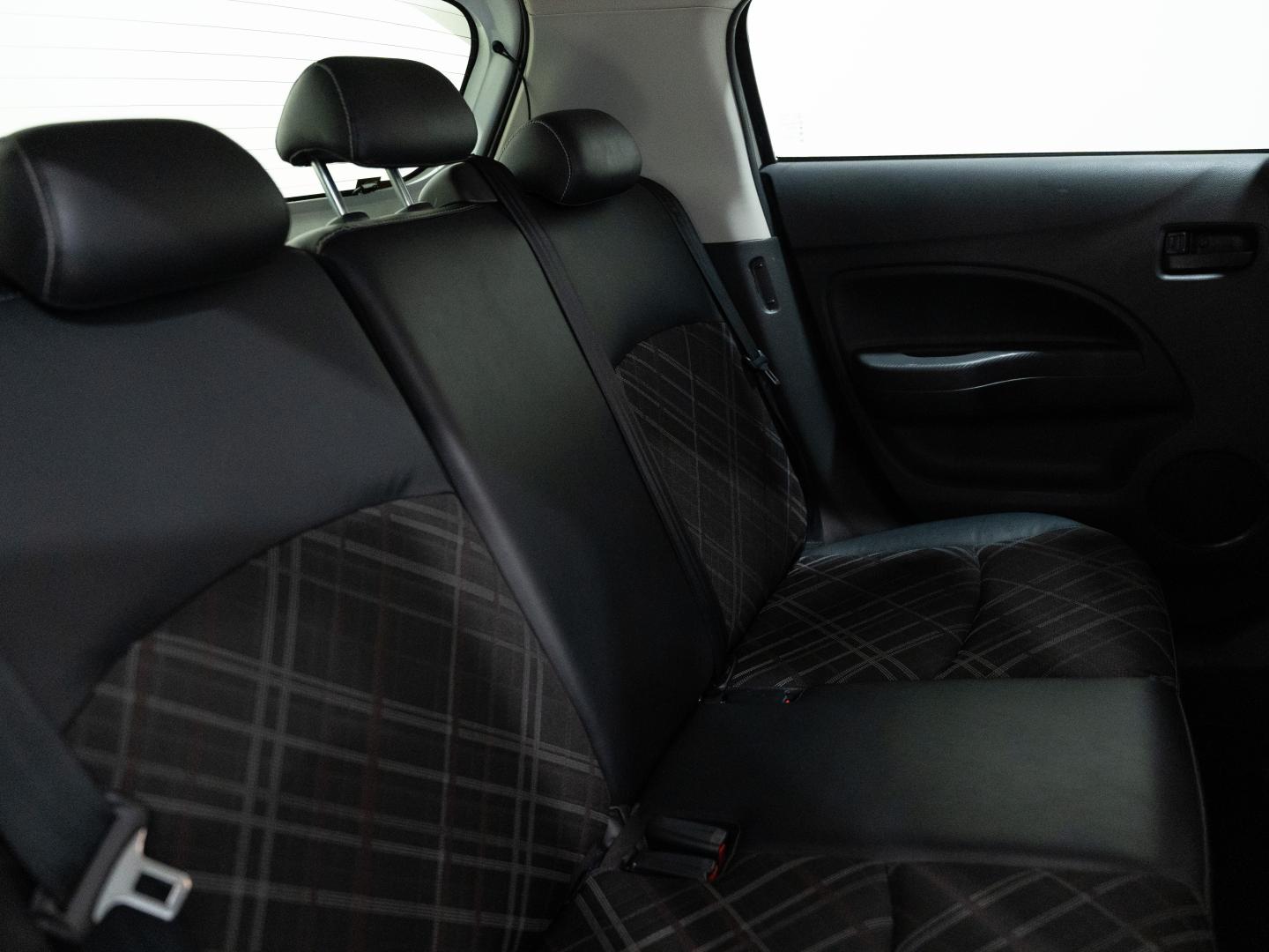 - Asientos de tela (material principal) y de cuero sintético (material secundario)