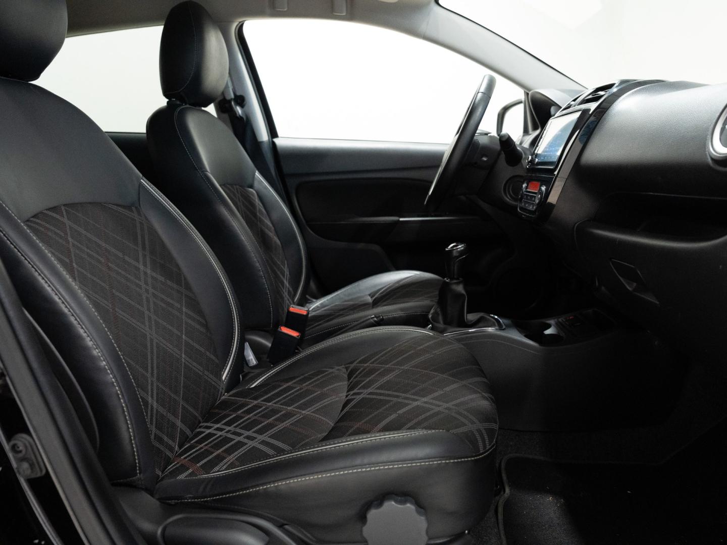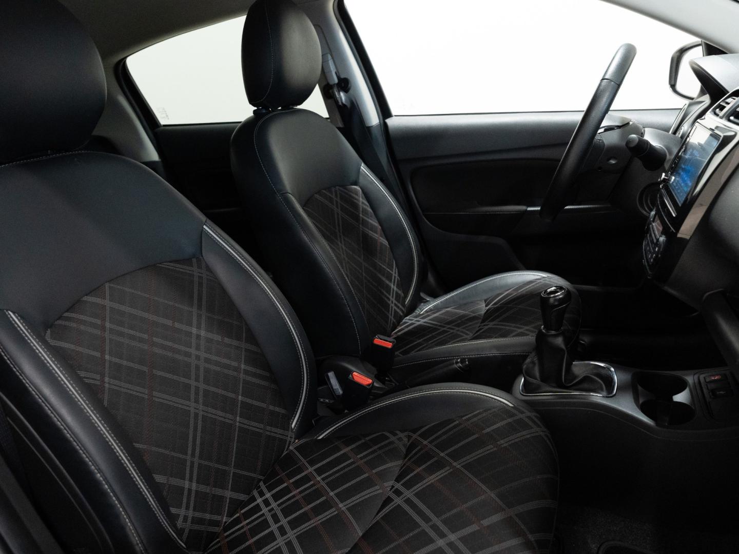 - Asientos de tela (material principal) y de cuero sintético (material secundario)