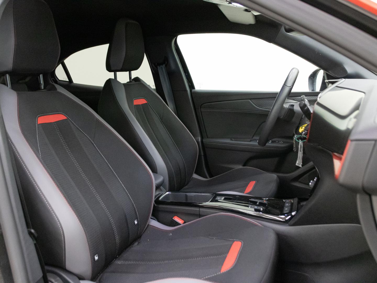 - Asientos de tela (material principal) y de cuero sintético (material secundario)