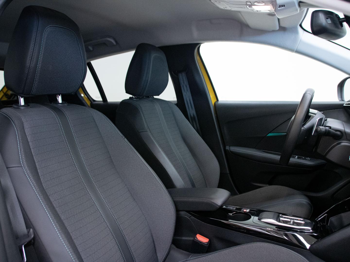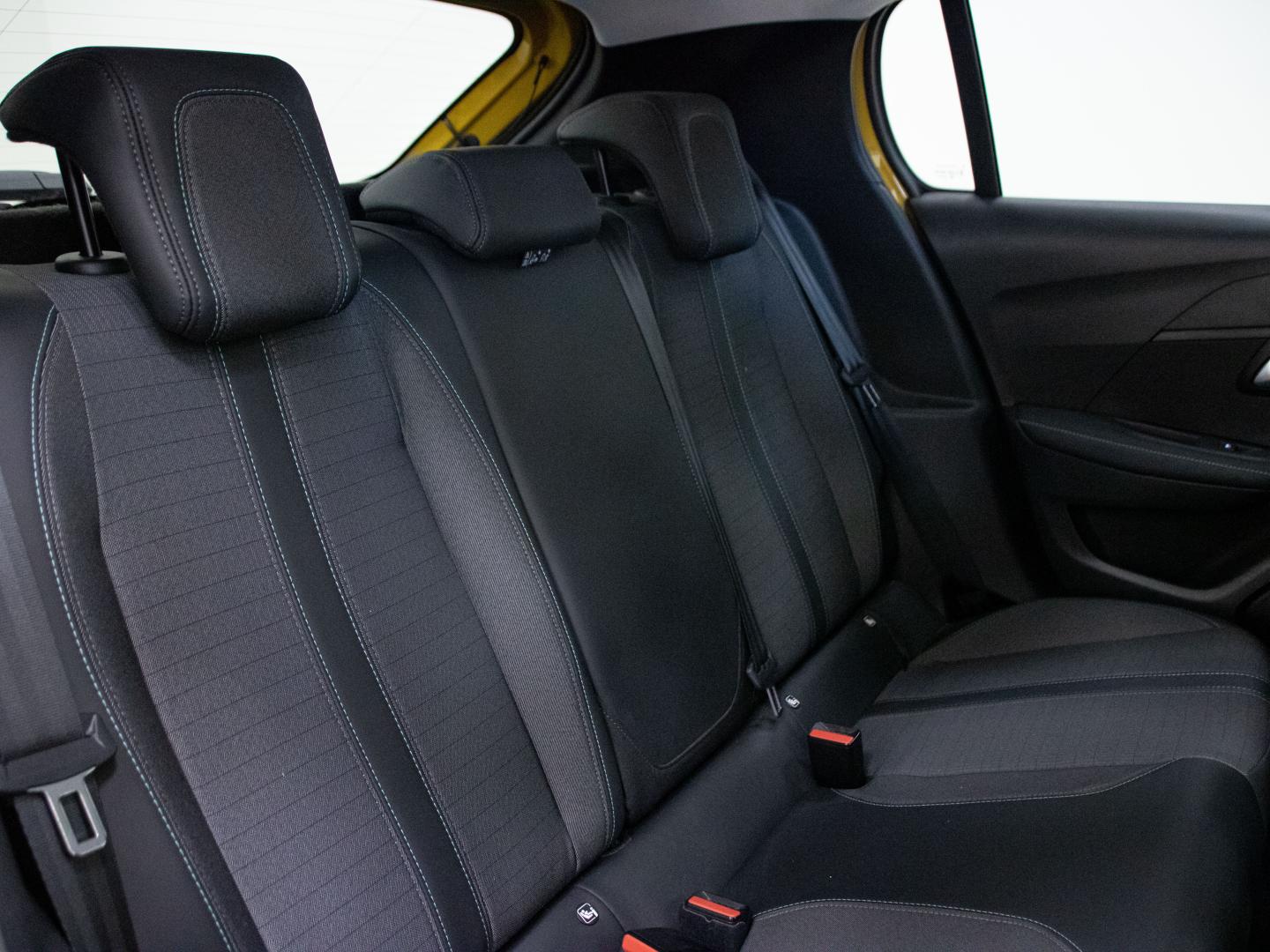 - Asientos de tela (material principal) y de cuero sintético (material secundario)
