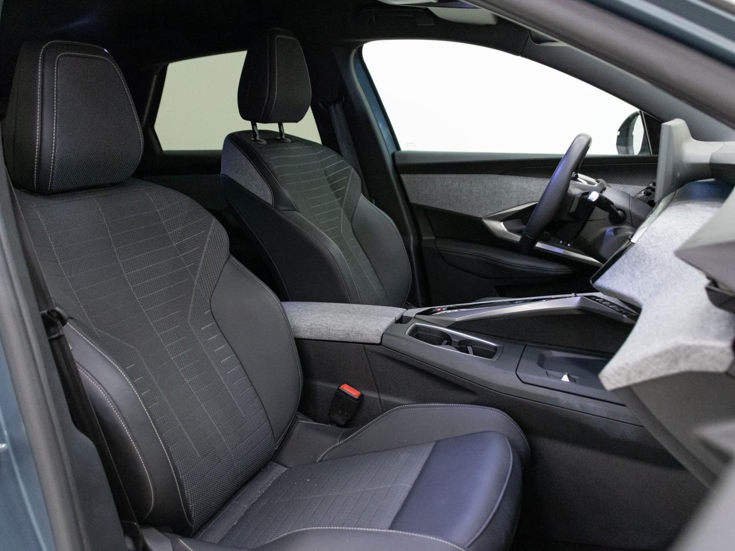 - Asientos de tela (material principal) y de cuero sintético (material secundario)