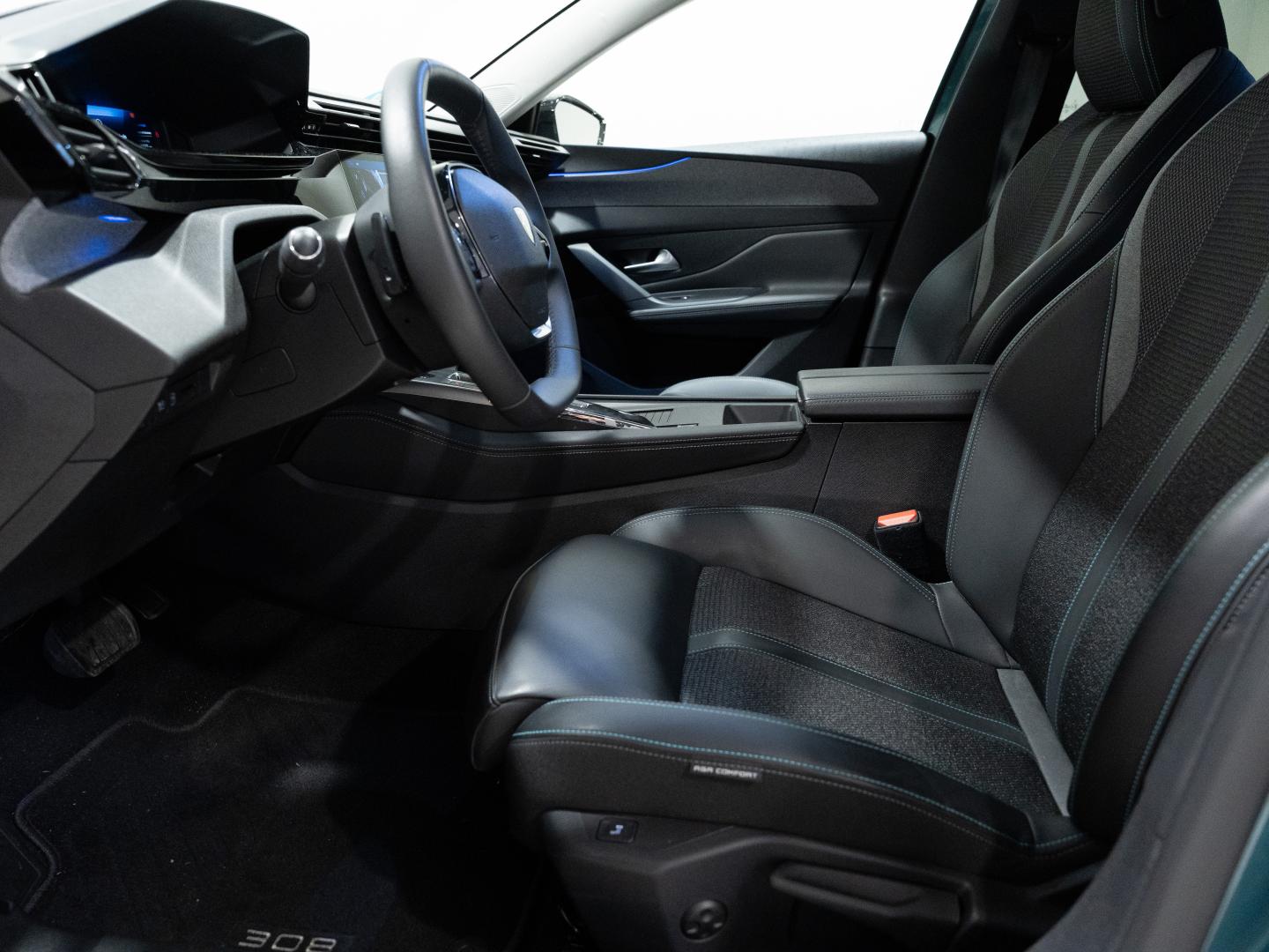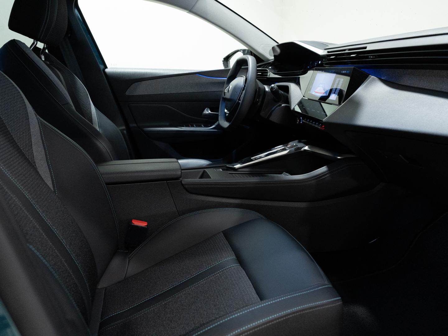 - Asientos de tela (material principal) y de cuero sintético (material secundario)