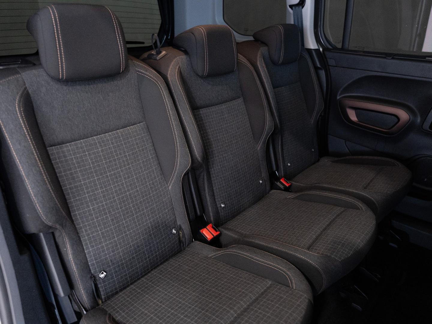 - Asientos traseros de tres plazas de tipo individual desmontables de orientación delantera abatibles en el suelo con banqueta fija y respaldo abatible individual