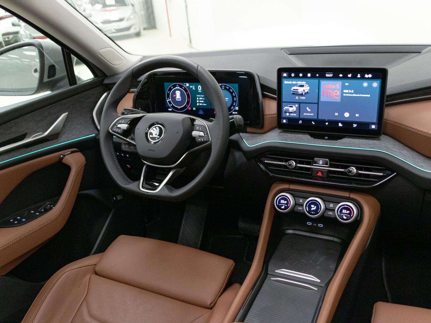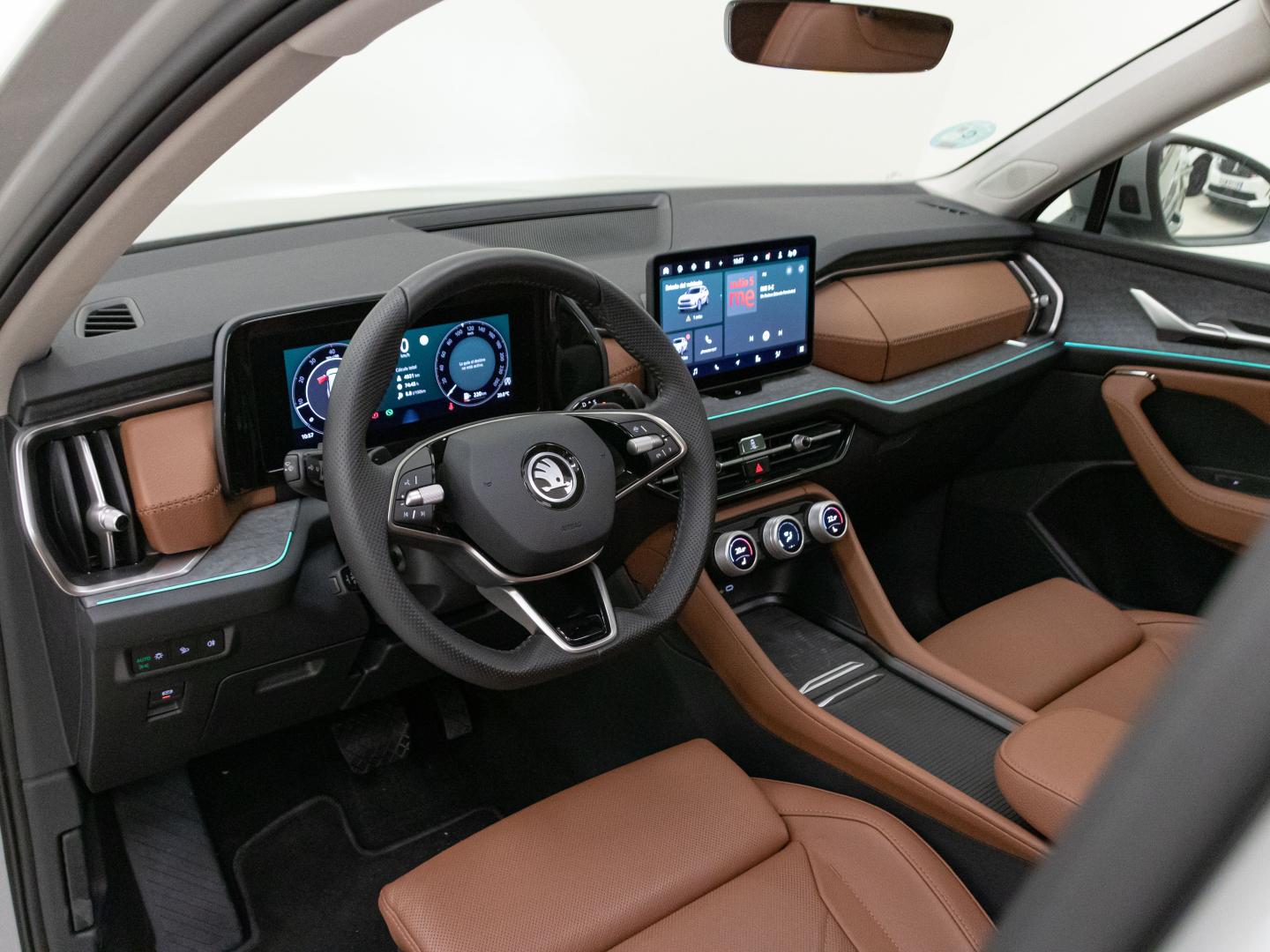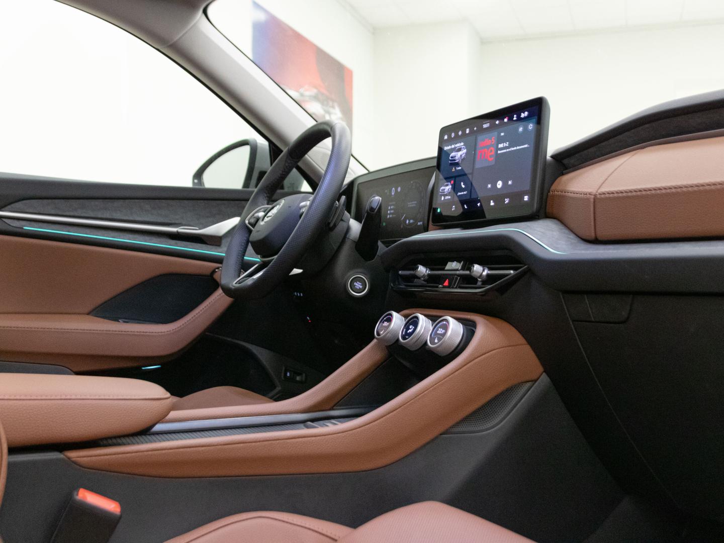 - Acabados de lujo: consola central en negro piano, puertas en cuero sintético y tablero en símil titanio