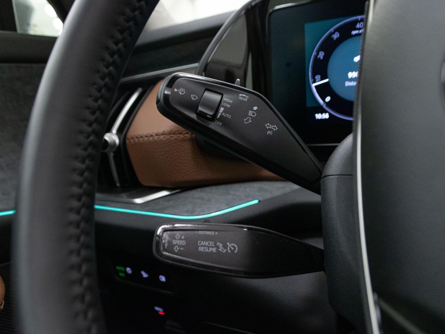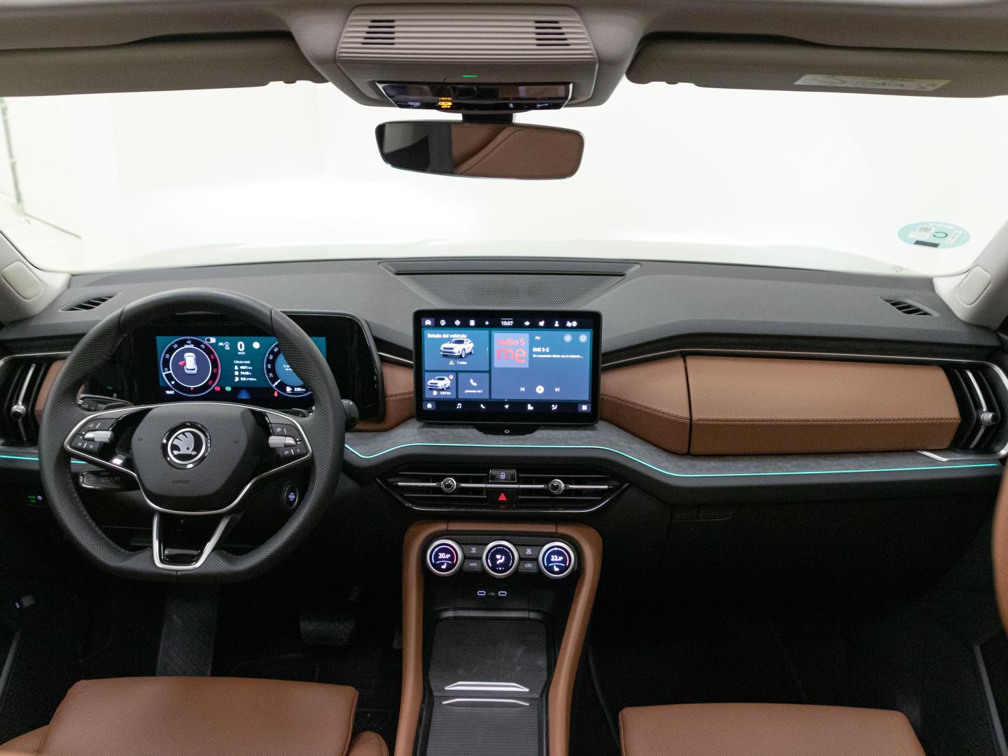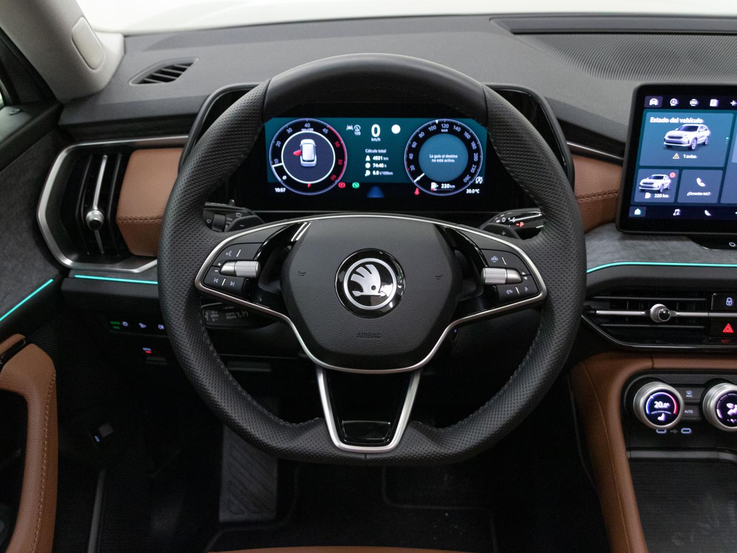 - Acabados de lujo: consola central en negro piano, puertas en cuero sintético y tablero en símil titanio