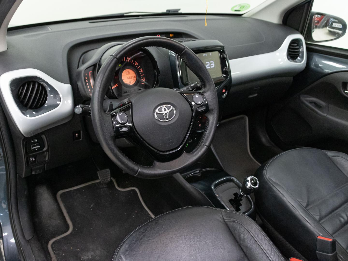El Toyota Aygo acabado X-cite 1.0 de 69 CV automático es un urbano compacto, muy ágil y con carácter, ideal para moverse por ciudad con estilo. Su motor pequeño y eficiente proporciona una conducción fluida y económica. El acabado X-cite ofrece detalles diferenciales como el techo solar, pantalla táctil con conectividad, llantas de aleación, aire acondicionado, cámara trasera y un interior moderno y bien resuelto. Un coche divertido, bien equipado y perfecto para desplazamientos urbanos cómodos y con personalidad.